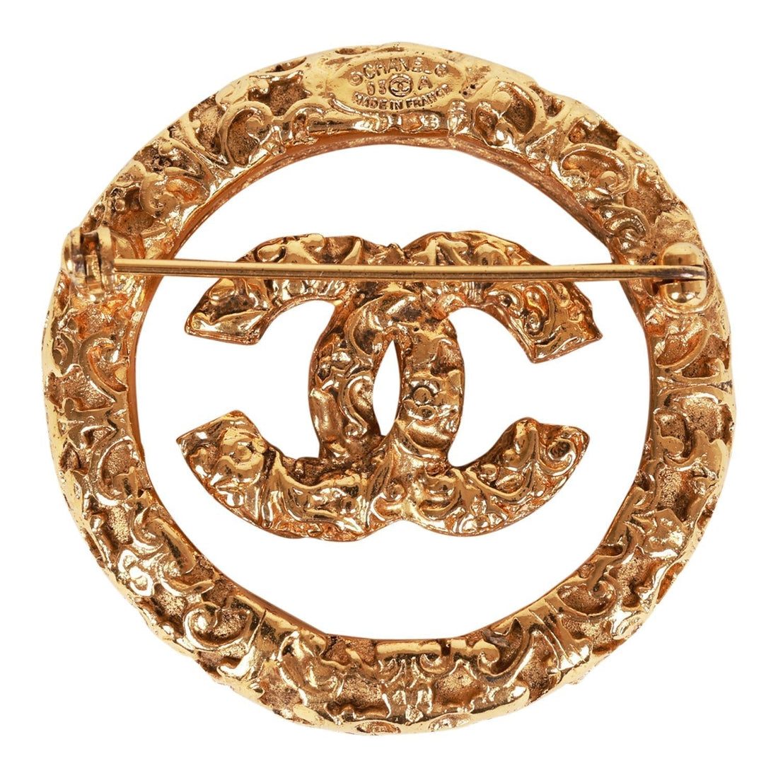 This vintage 93A brooch is in gold tone lava textured metal featuring the CC logo enclosed in...