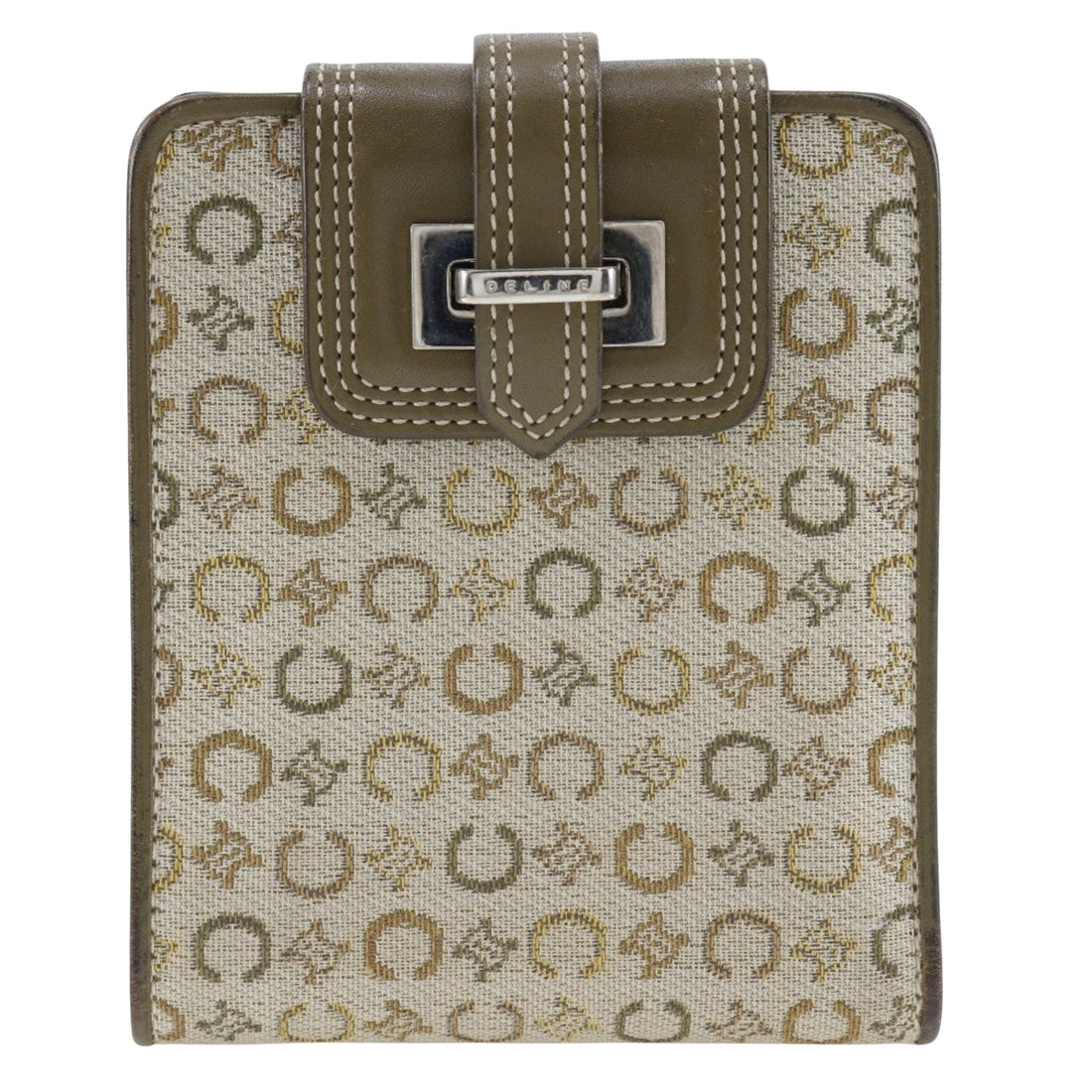 CELINE Trio Large Shoulder Bag Canvas Green Gold Auth 88114BRAND : CELINE Color : Green...