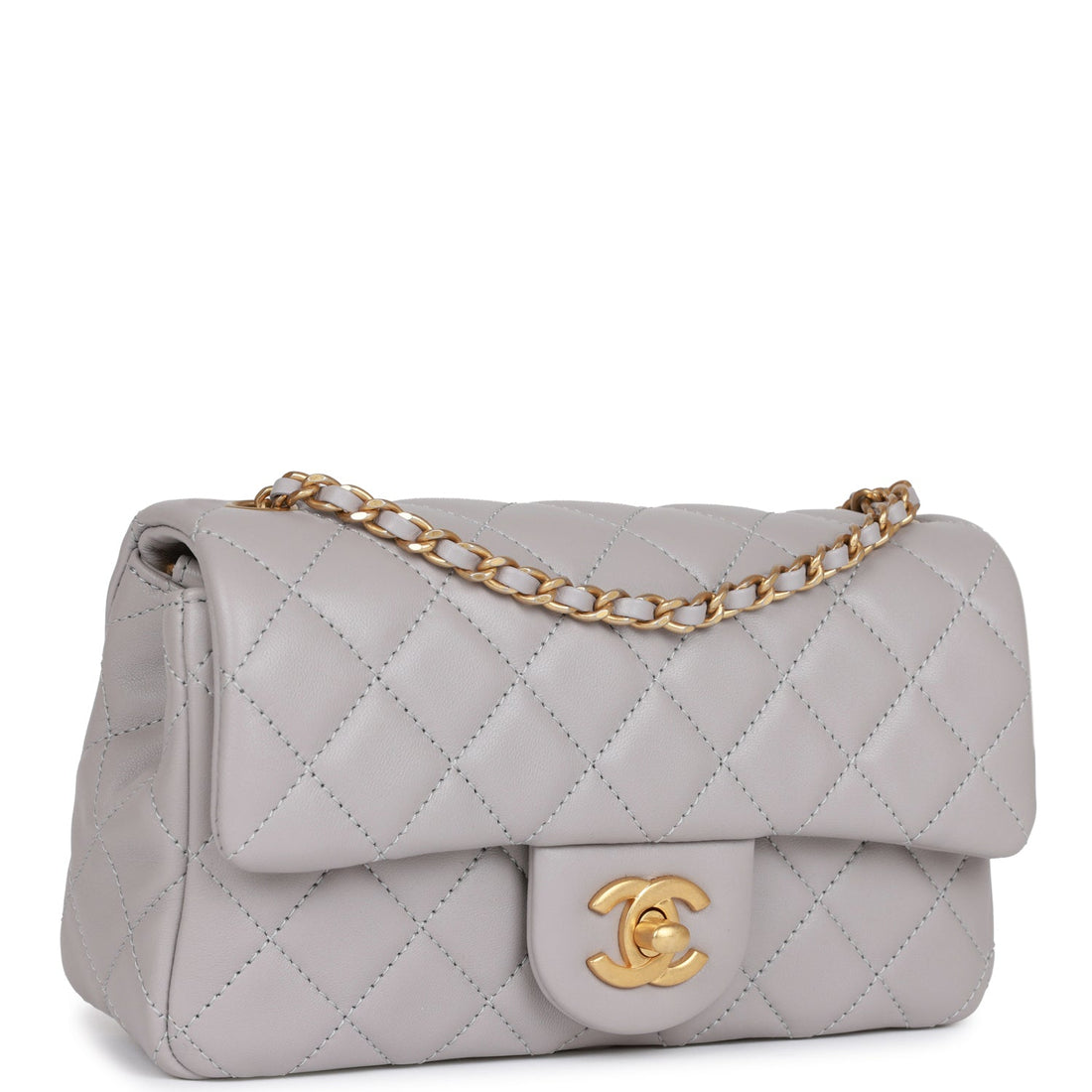 Chanel Mini Rectangular Flap Bag Light Grey Lambskin Light Gold Hardware