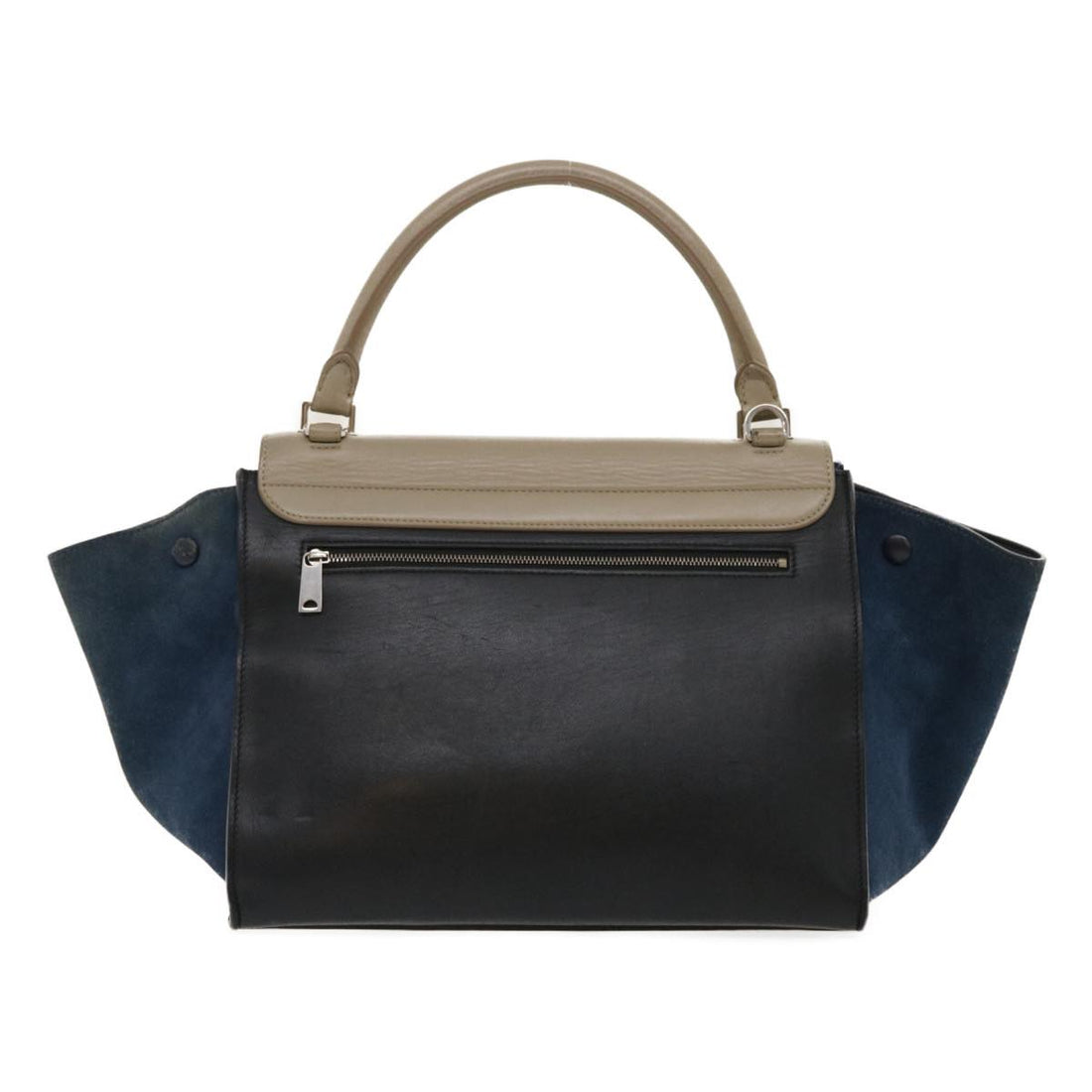 Celine Hand Bag Leather Suede Gray Navy am2375g