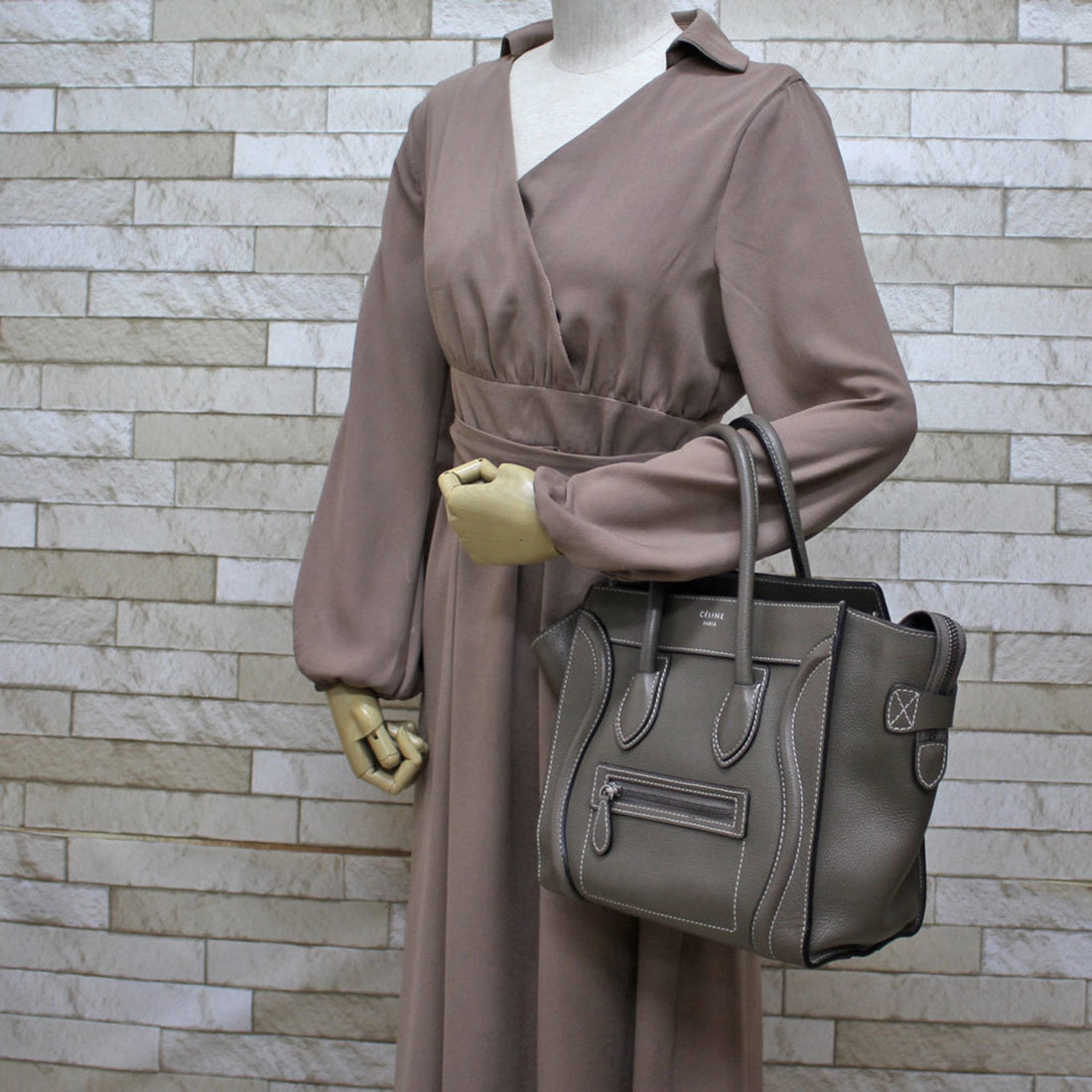 Celine Luggage Micro Handbag Gray Beige Women's Leather