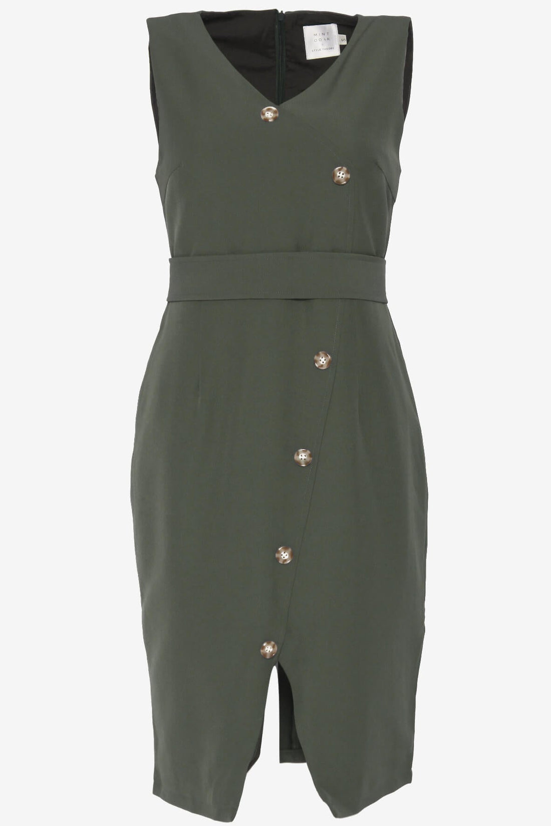 Description The Mint Ooak overlap pencil dress features front Button details, is sleeveless with V...