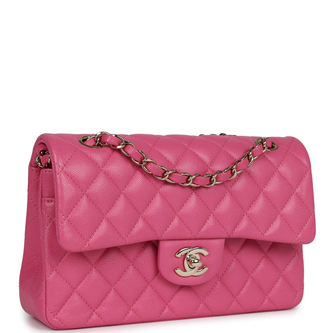 Chanel Small Classic Double Flap Dark Pink Caviar Light Gold Hardware