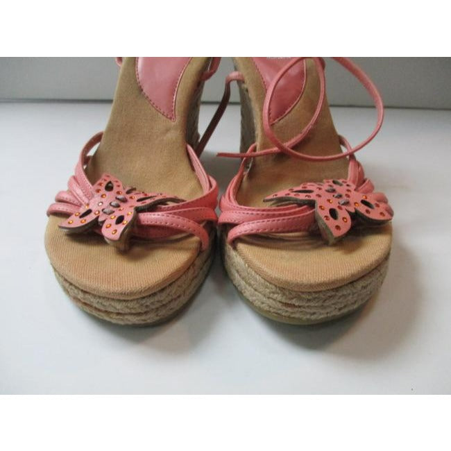 Bakers Pink Strappy Butterfly Rhinestone Espadrille Platform Sandals Size Us