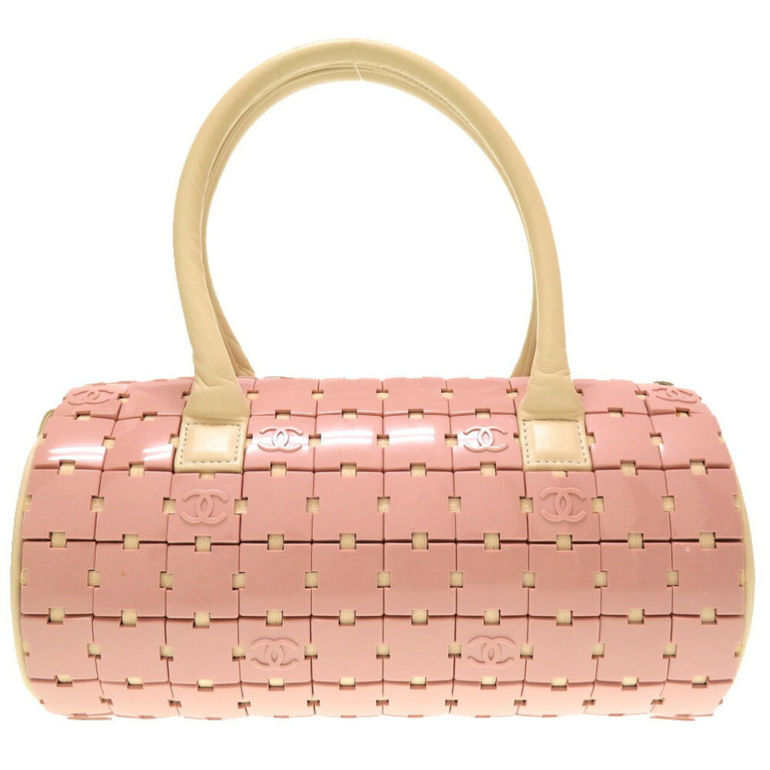 Chanel Duffle Bag Plastic Leather Pink White 6s HandBag
