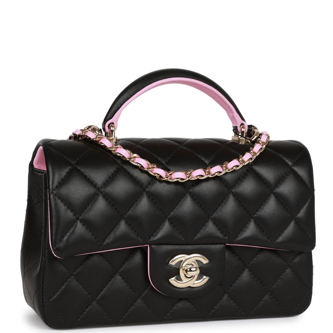 Chanel Mini Rectangular Flap with Top Handle Black and Pink Lambskin Light Gold Hardware