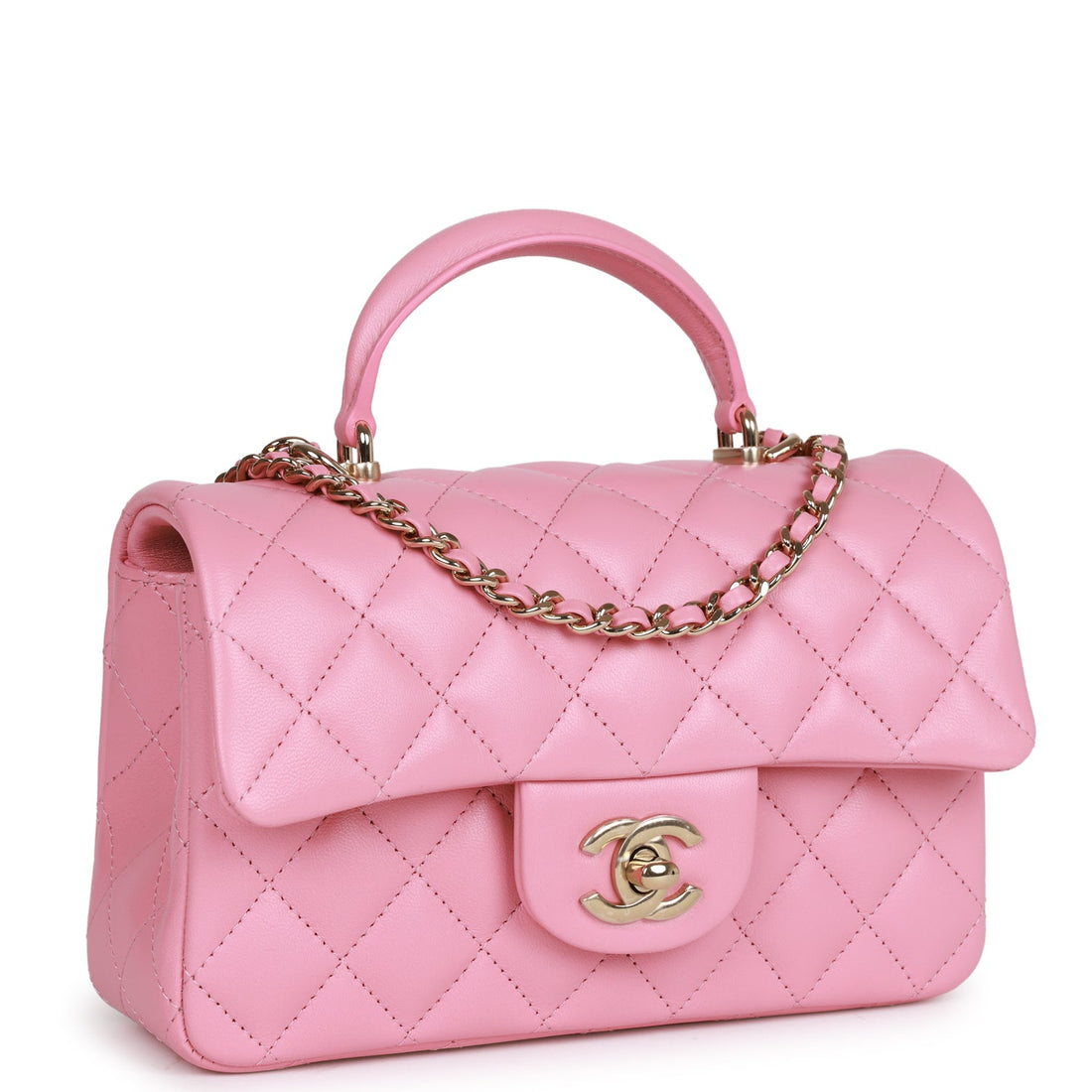 Chanel Mini Rectangular Flapbag with Top Handle Pink Lambskin Light Gold Hardware