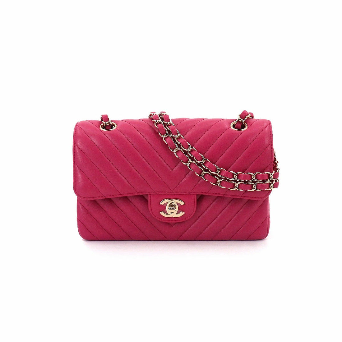CHANEL Pink Chevron small classic bag Dimensions: 14 x 23 x 6 cm Color: Pink Condition: Very good Included:...
