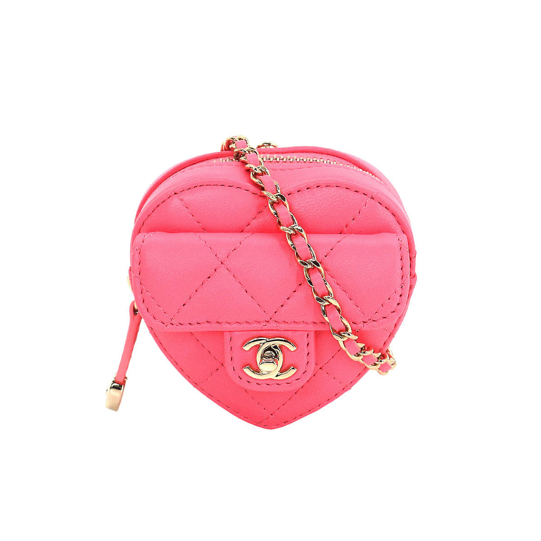 Chanel Pink Heart Coin purse with a chain