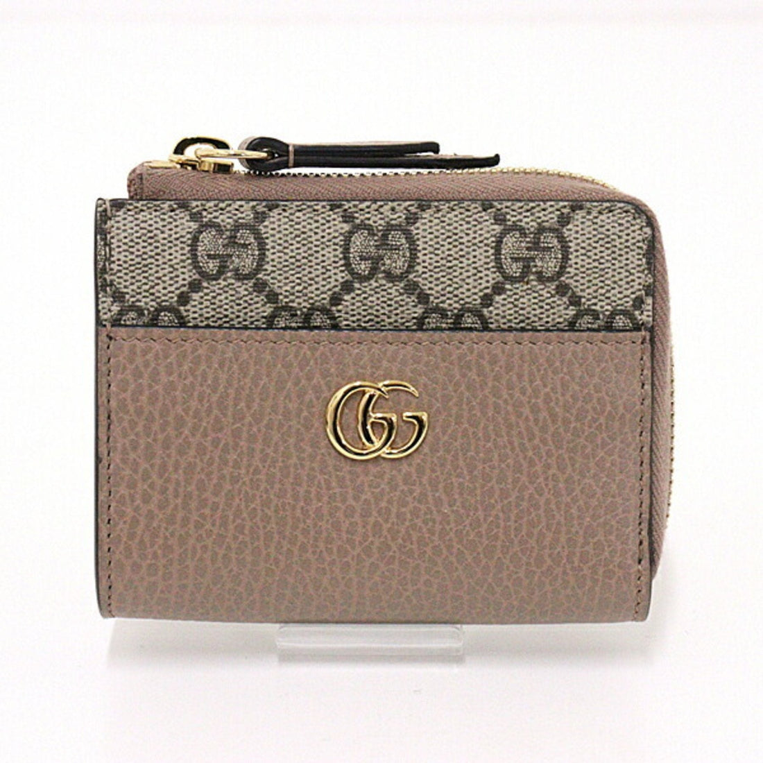 GUCCI GG Marmont Leather Bifold Wallet 456126 Pink Beige Women's