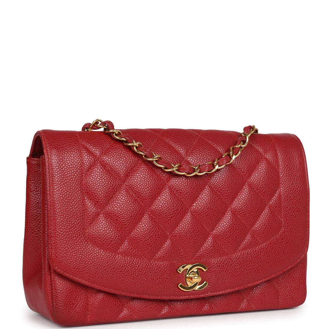 Vintage Chanel Medium Diana Flap Bag Red Caviar Gold Hardware