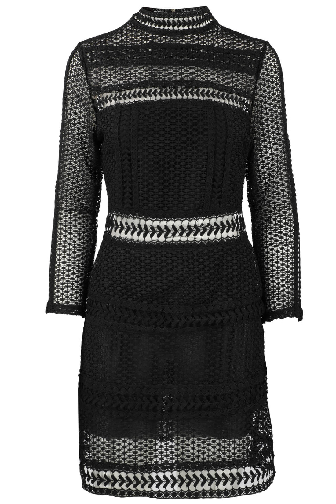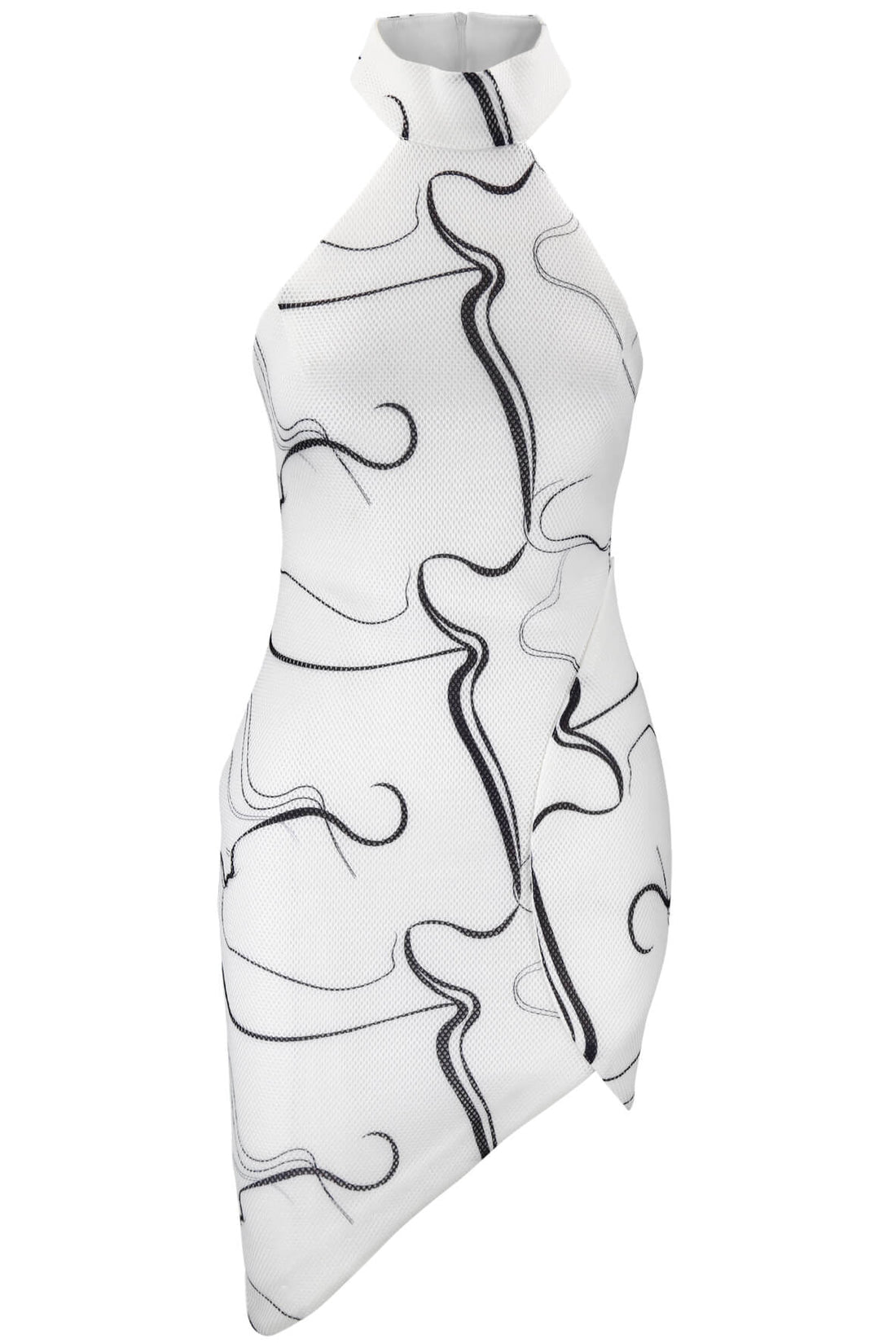 Description Thick printed mesh dress with high neck and asymetrical hem Details Fit: slimSilhouette: PencilSleeve...