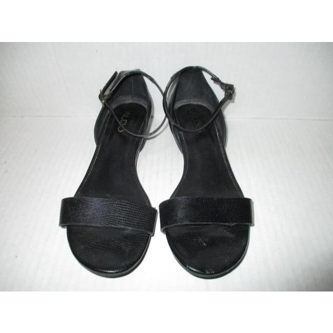 Aldo Black Pebbled Ankle Strap Flat Sandals Size Us