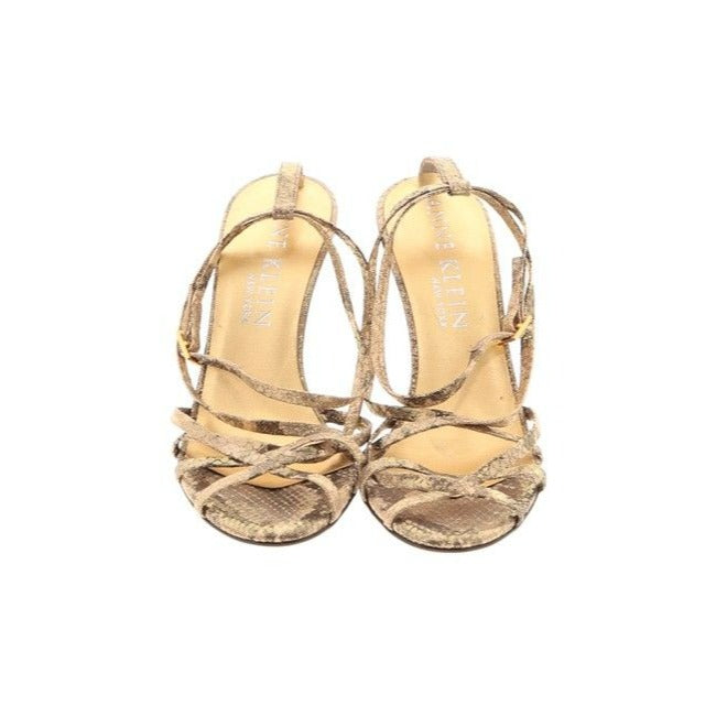 Anne Klein Metallic Gold Strappy Lizard Open Toe Slip On Pumps Sandals Size Us