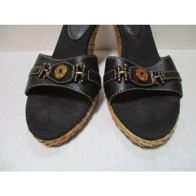 Joan And David Brown Open Toe Lacquer Wicker Platform Sandals Size Us