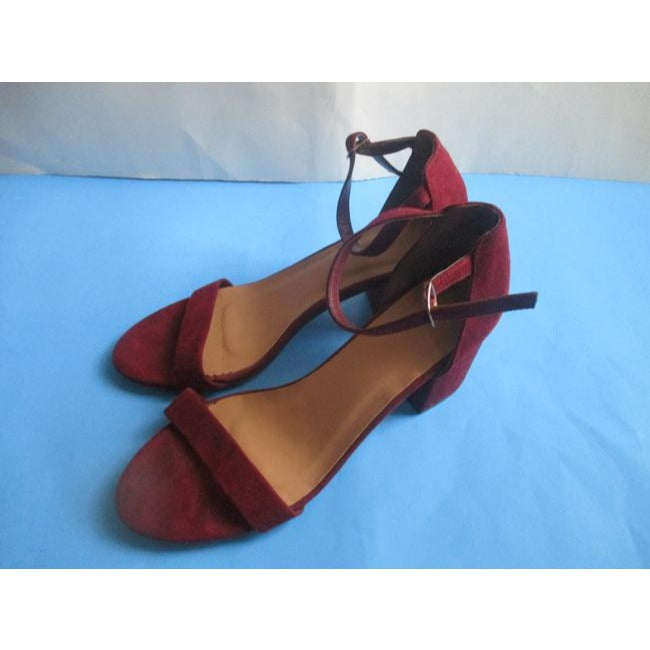 Bamboo Cranberry Maroon Burgundy Suede Ankle Strap Open Toe Pumps Size Us