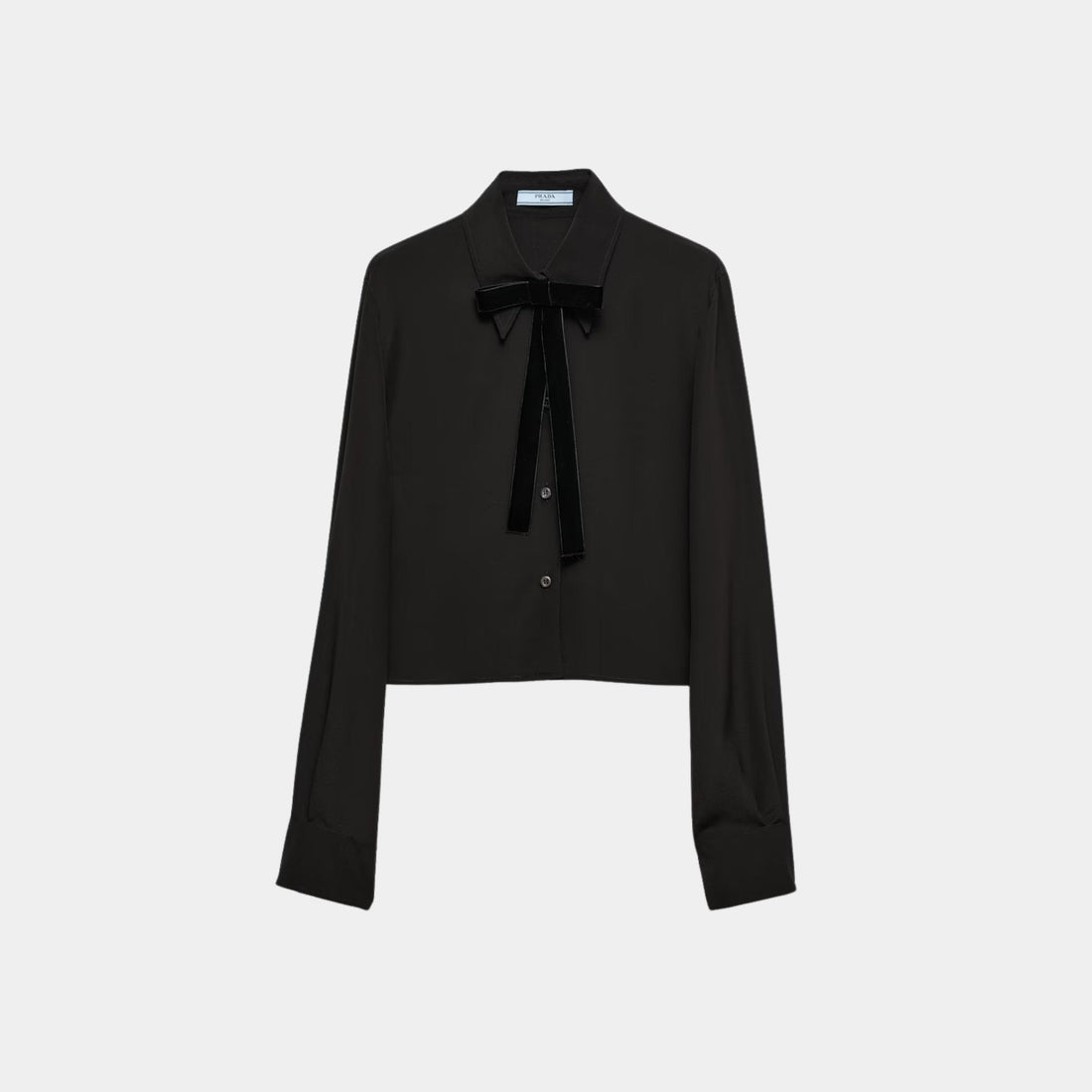 Crepe de Chine Boxy Shirt with Velvet Bow