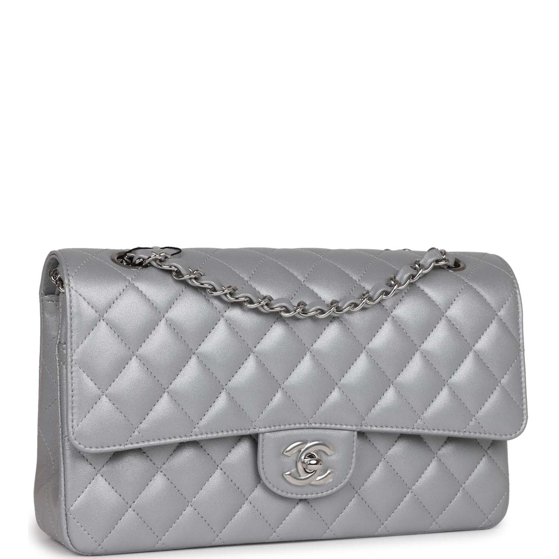 Chanel Medium Classic Double Flap Bag Silver Metallic Lambskin Silver Hardware