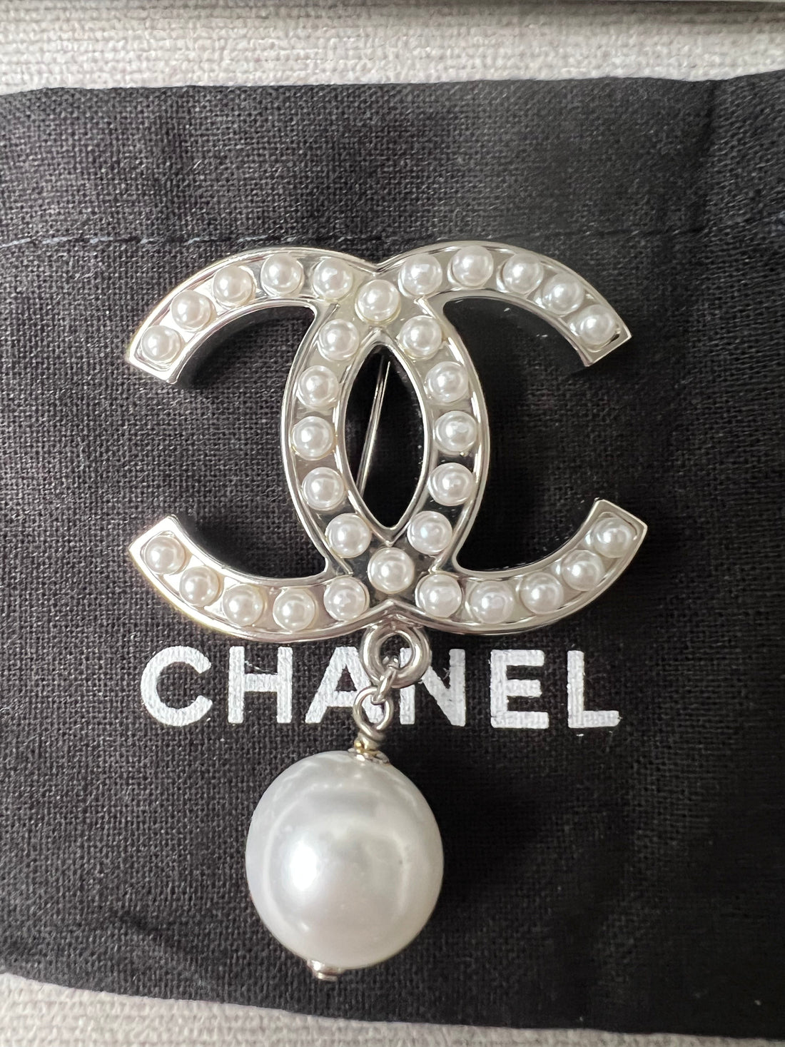 Chanel Pearl Studded CC Brooch with Drop Pearl