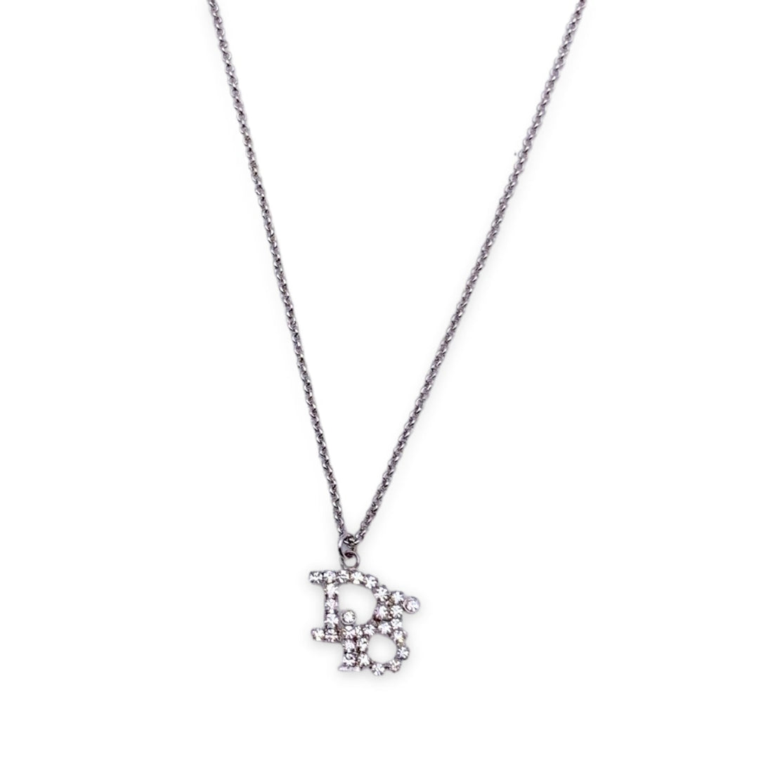 CHRISTIAN DIOR Silver Metal Crystals Oblique Logo Necklace