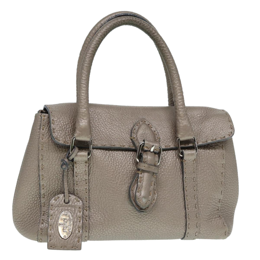 FENDI Celeria Hand Bag Leather Silver Auth 78418