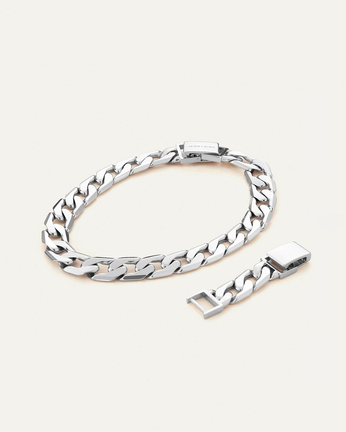 This bracelet boasts crisp, faceted links with an integrated, elevated closure. Available in two sizes...