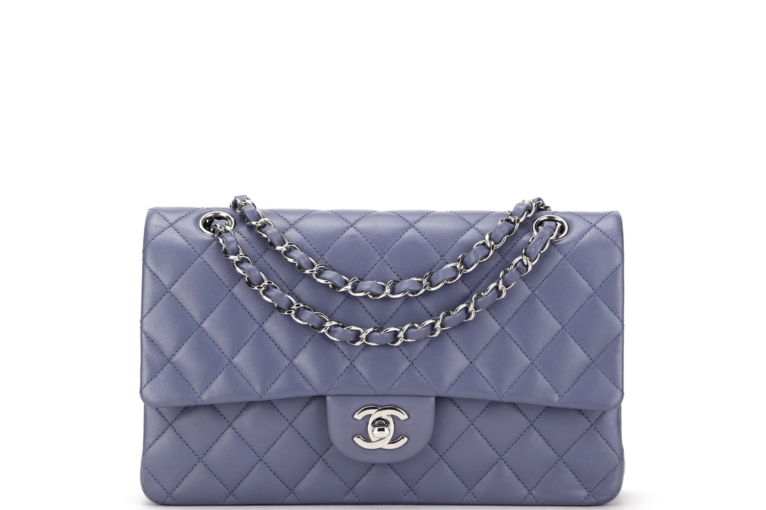 BRAND: CHANELMODEL: CLASSIC FLAP (1583xxxx)COLOR: LILAC & SILVER COLORSIZE: MEDIUM SIZE, D 6.5CM x H...