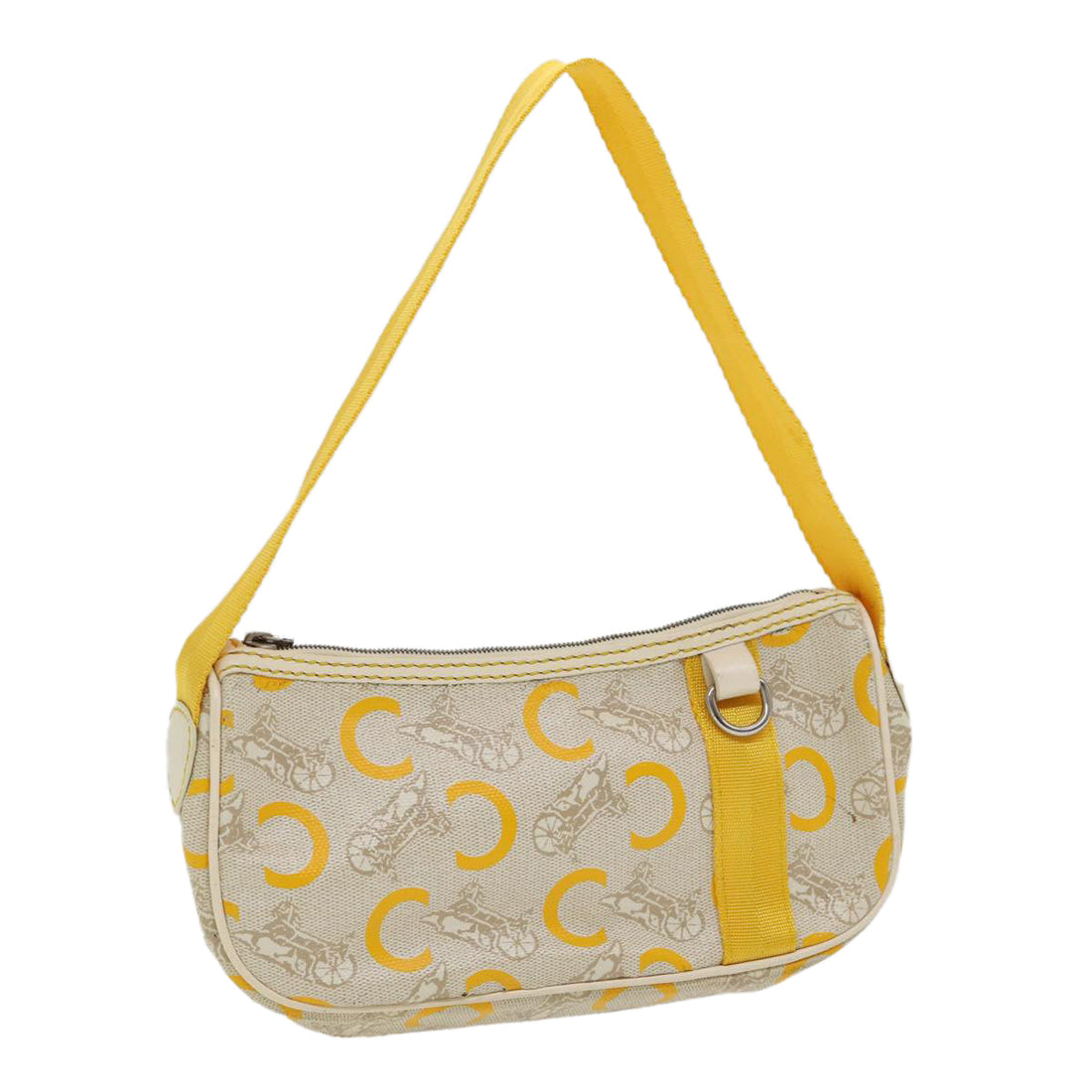 CELINE Boogie bag Hand Bag Canvas Leather Beige Yellow Auth yk12809