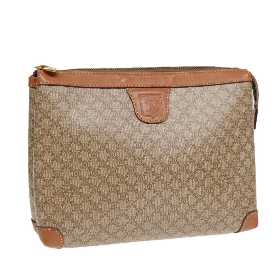 CELINE Macadam Canvas Clutch Bag Beige Gold Auth ar12344