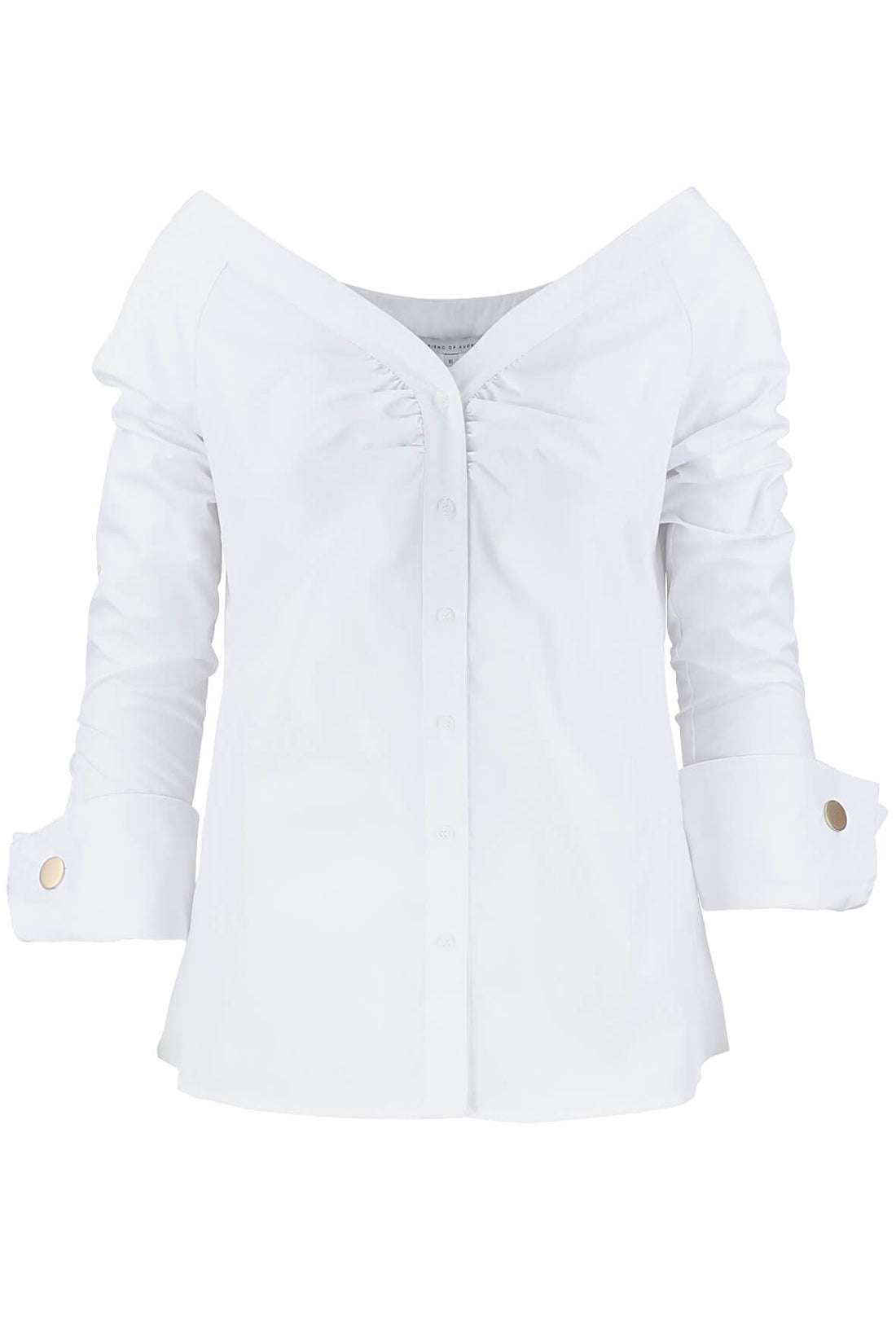 Description The art of bold cuffs. The Chloe Off Shoulder Shirt features an off-shoulder neckline...