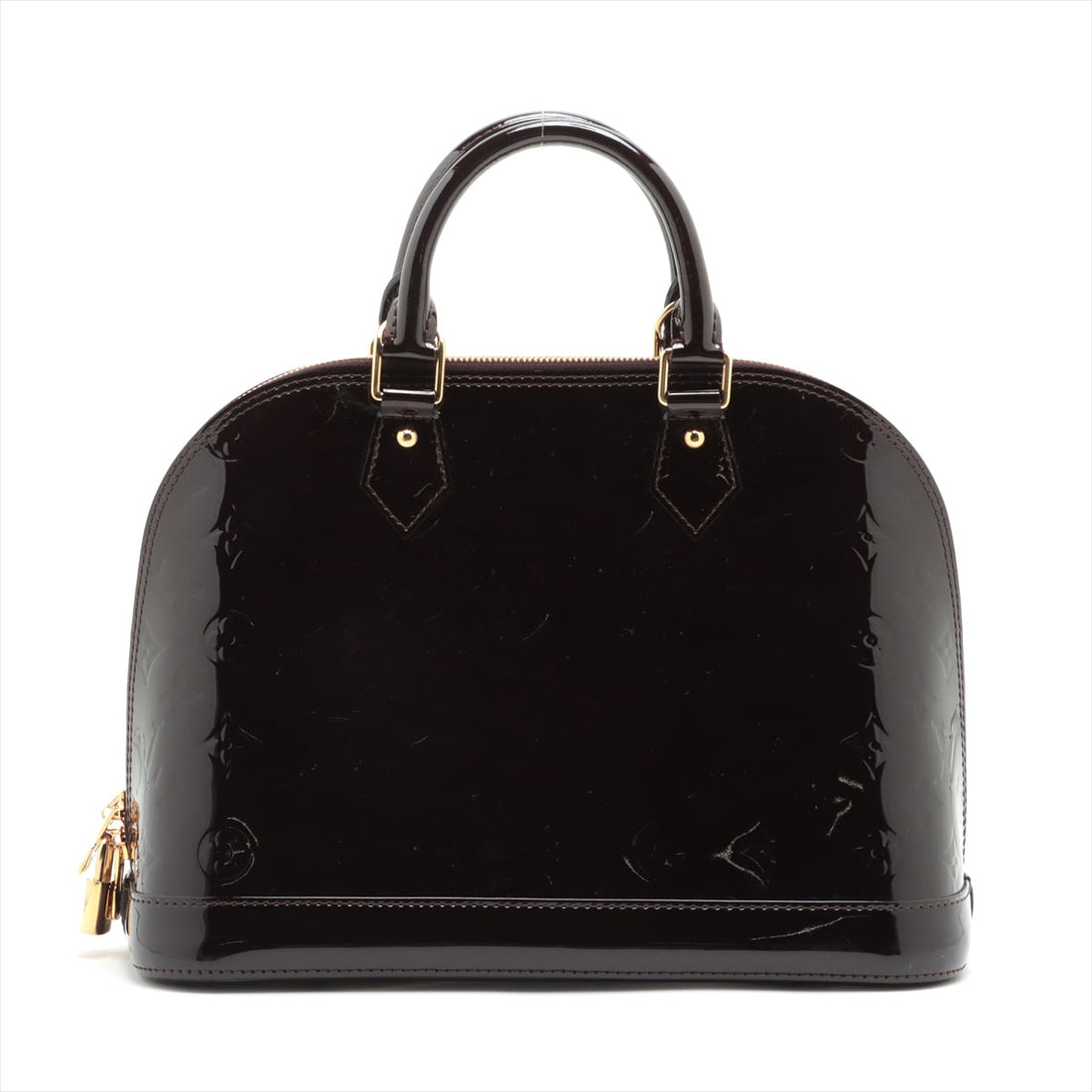 Elevate your style with the luxurious Auth Louis Vuitton Vernis Alma Handbag in stunning Amarante...