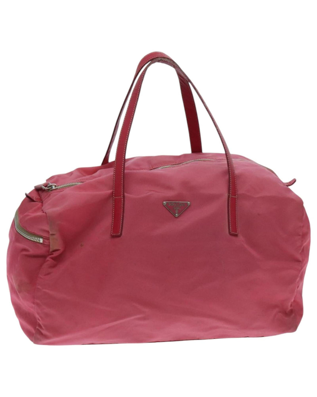 PRADA Boston Bag Pink nylon material Silver accents Durable and lightweight design Iconic PRADA logo...
