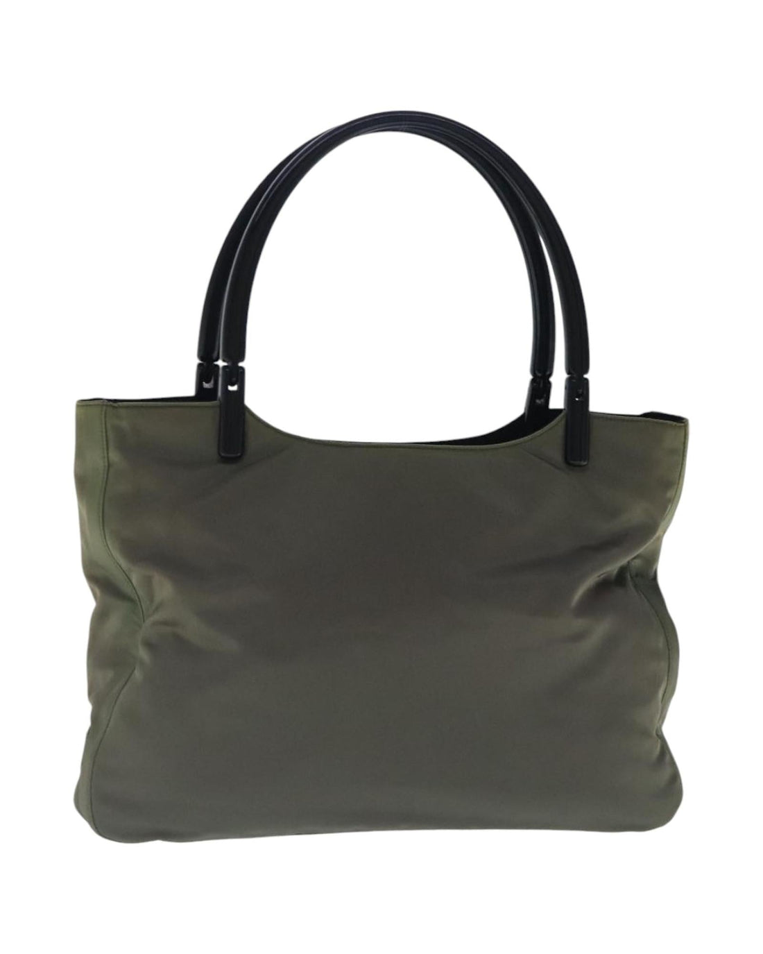 Brand: PRADA Color: Khaki / Silver Material: Nylon Size: W31cm x H18cm x D4cm (Approx)...