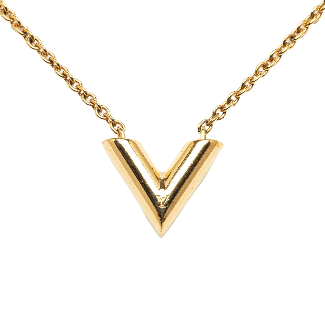 Product Details: Gold Louis Vuitton Essential V Necklace. This necklace features a gold-tone body and...