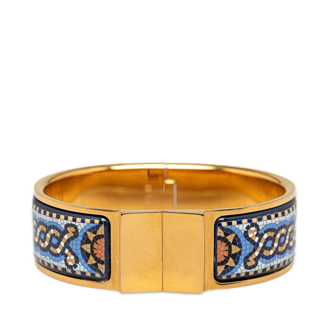 Product Details: Gold Louis Vuitton Loquet Wide Enamel Bracelet. This bracelet features an enamel and...