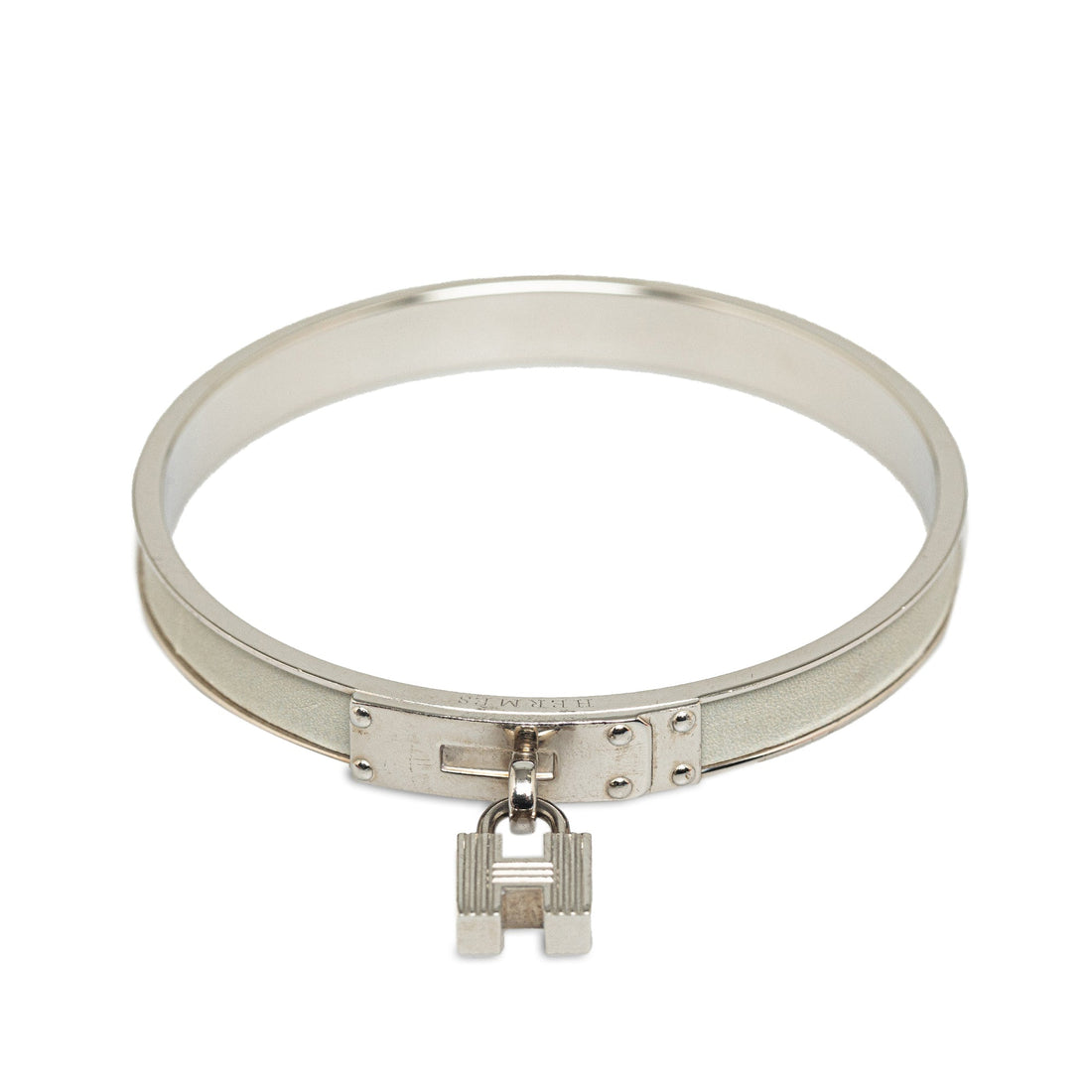 Product Details: Gray Louis Vuitton Kelly H Lock Bangle Costume Bracelet. This bangle features a...