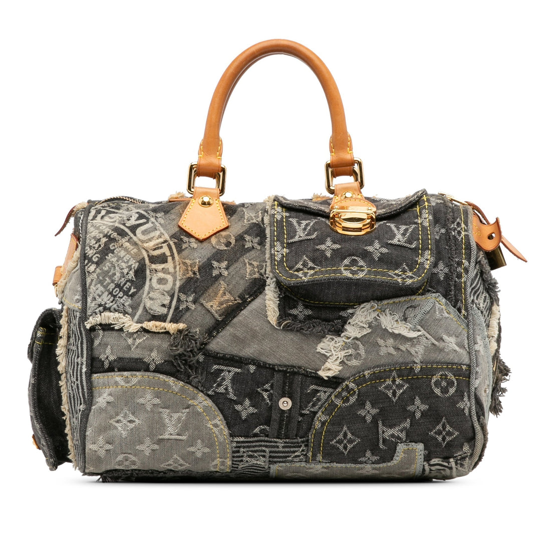 Gray Louis Vuitton Monogram Denim Patchwork Speedy 30 Boston Bag