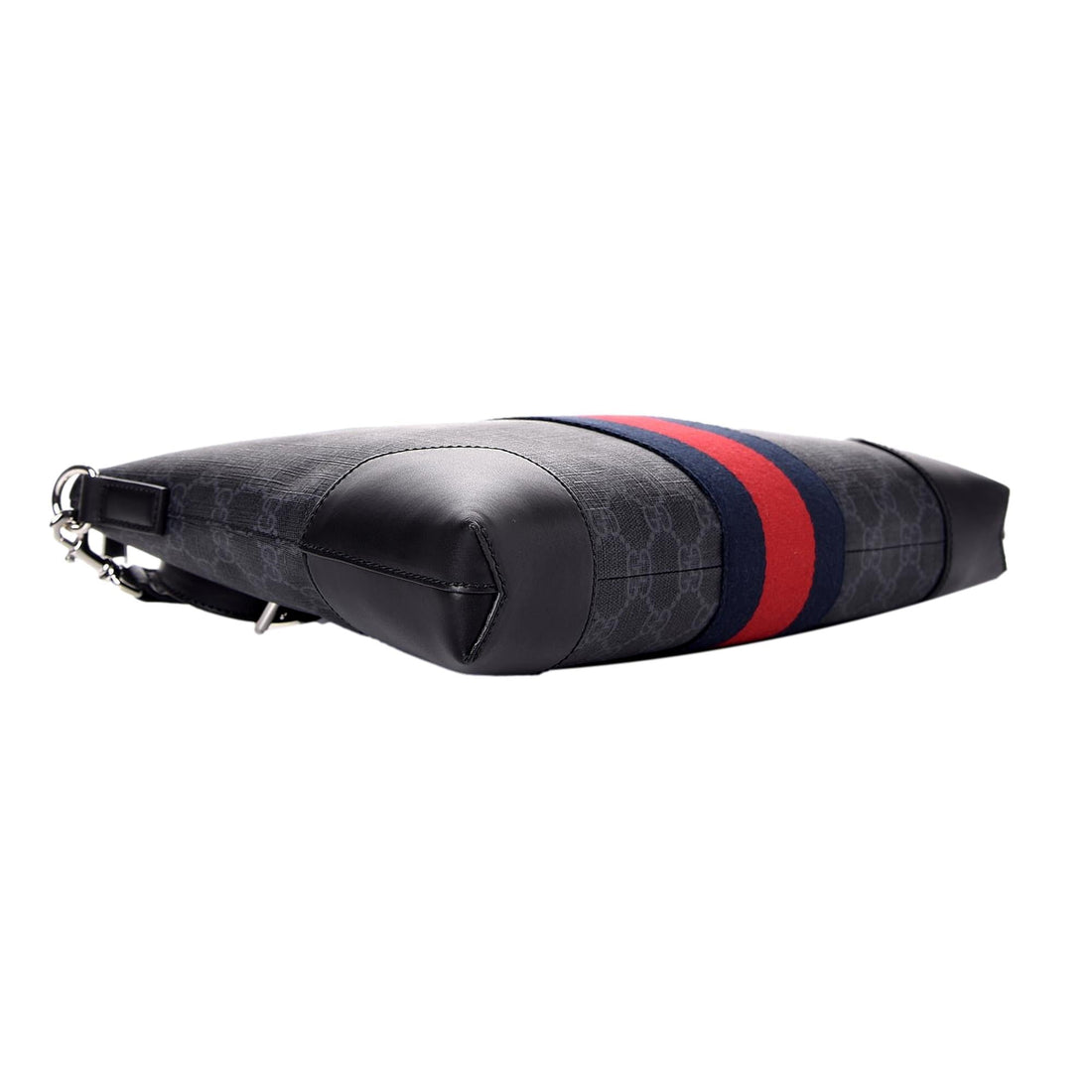 Gucci GG Supreme Black Canvas Stripe Messenger Bag