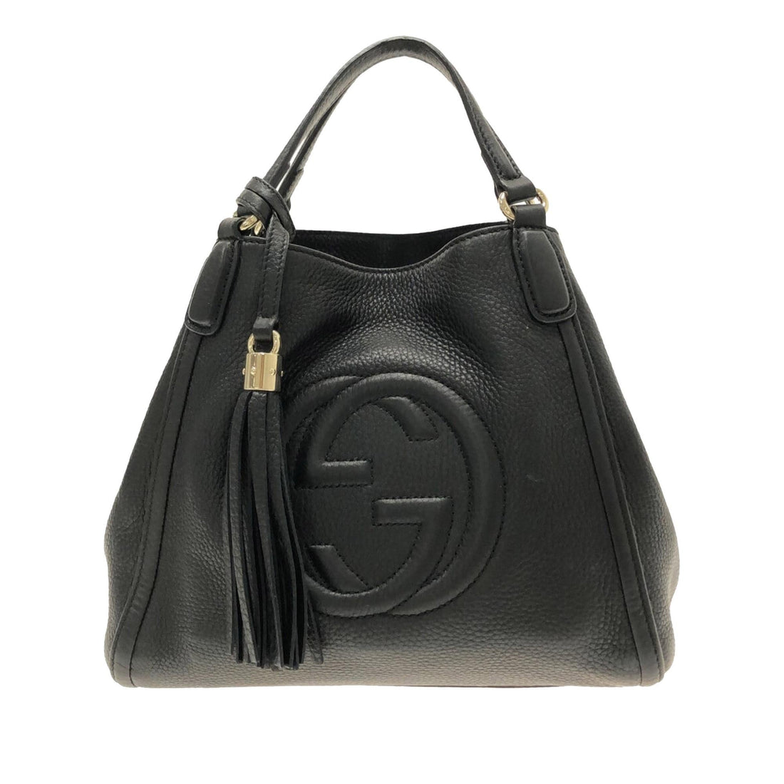 Gucci Soho Interlocking G Handbag Leather Black Tassel 2way