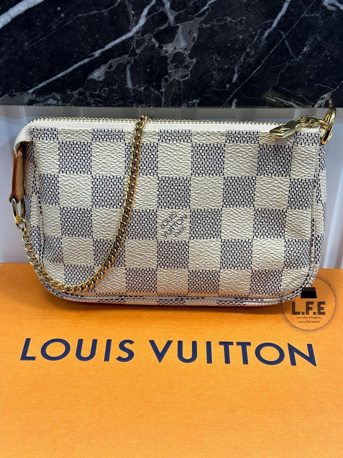 Petite pochette en damier azur de la Maison Louis Vuitton, une pièce très tendance, parfaite...