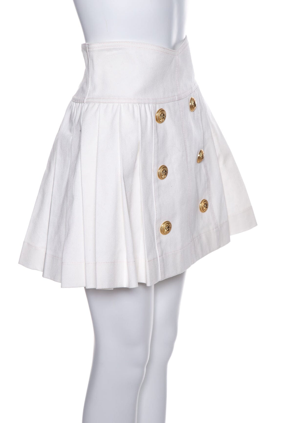 Balmain White Pleated Skirt With Gold Buttons. This item is in very good condition.Size: 38Waist:...