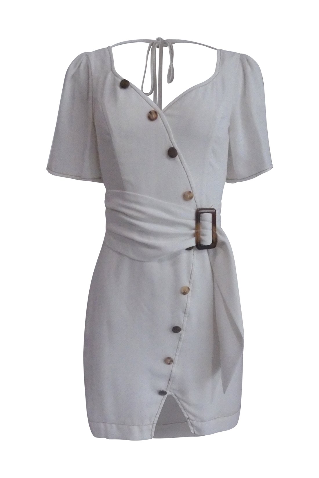 White V-Neck Midi Dress With Belt