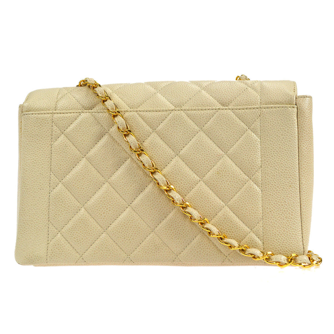 Chanel Medium Diana Chain Shoulder Bag White Caviar Engraved / Number 5199779 Pocket Outside: Pocket*1...