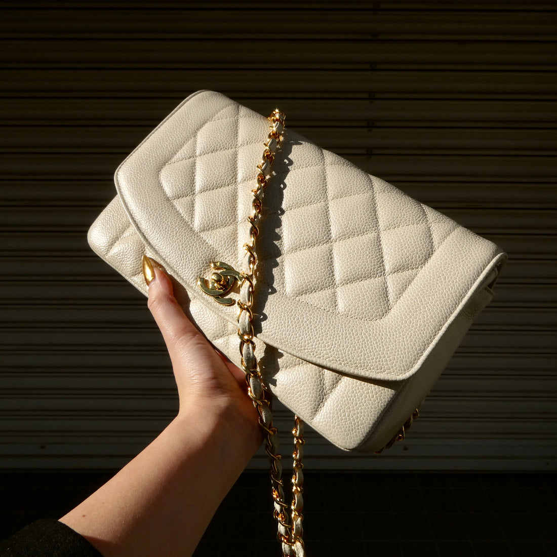 Chanel * 1997-1999 Medium Diana Chain Shoulder Bag White Caviar