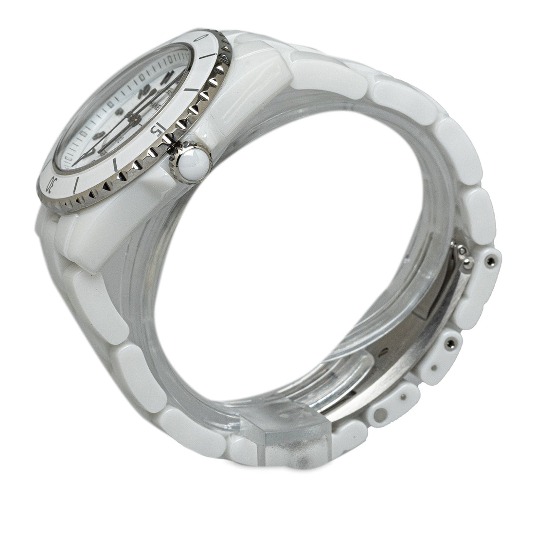 Chanel J12 Watch 12P Diamond H1628 White Ceramic x Quartz Analog Display Ladies Dial