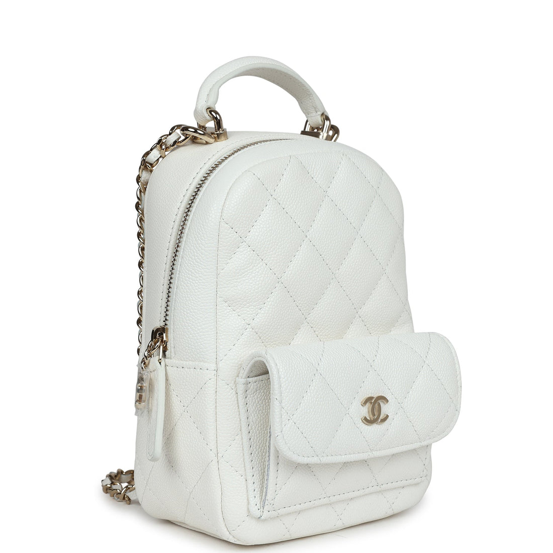 Chanel Mini Phone Holder Backpack White Caviar Light Gold Hardware