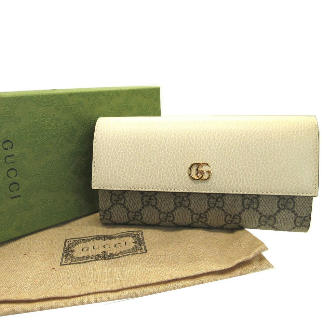 GUCCI GG Marmont 456116 Continental Supreme Leather Beige Ivory Bifold Long Wallet