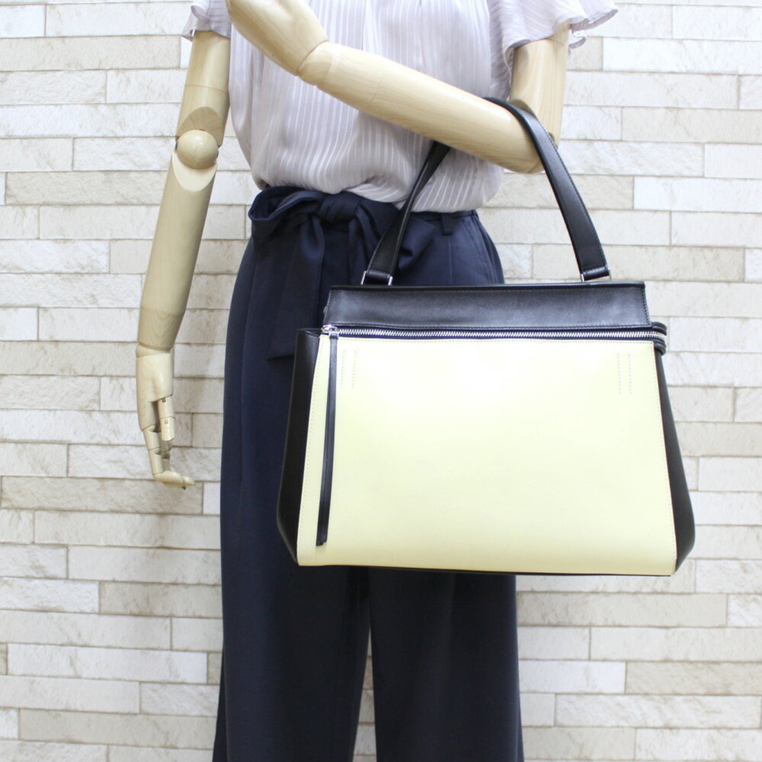 Celine Handbag Edge Overseas Large Black Yellow Women's Leather
