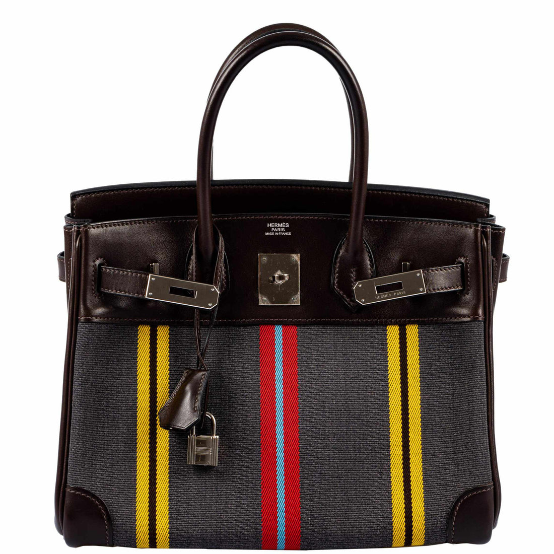 Hermès Birkin 30 Marron Fonce Calf & Colorful Wool Jumping Canvas Palladium Hardware