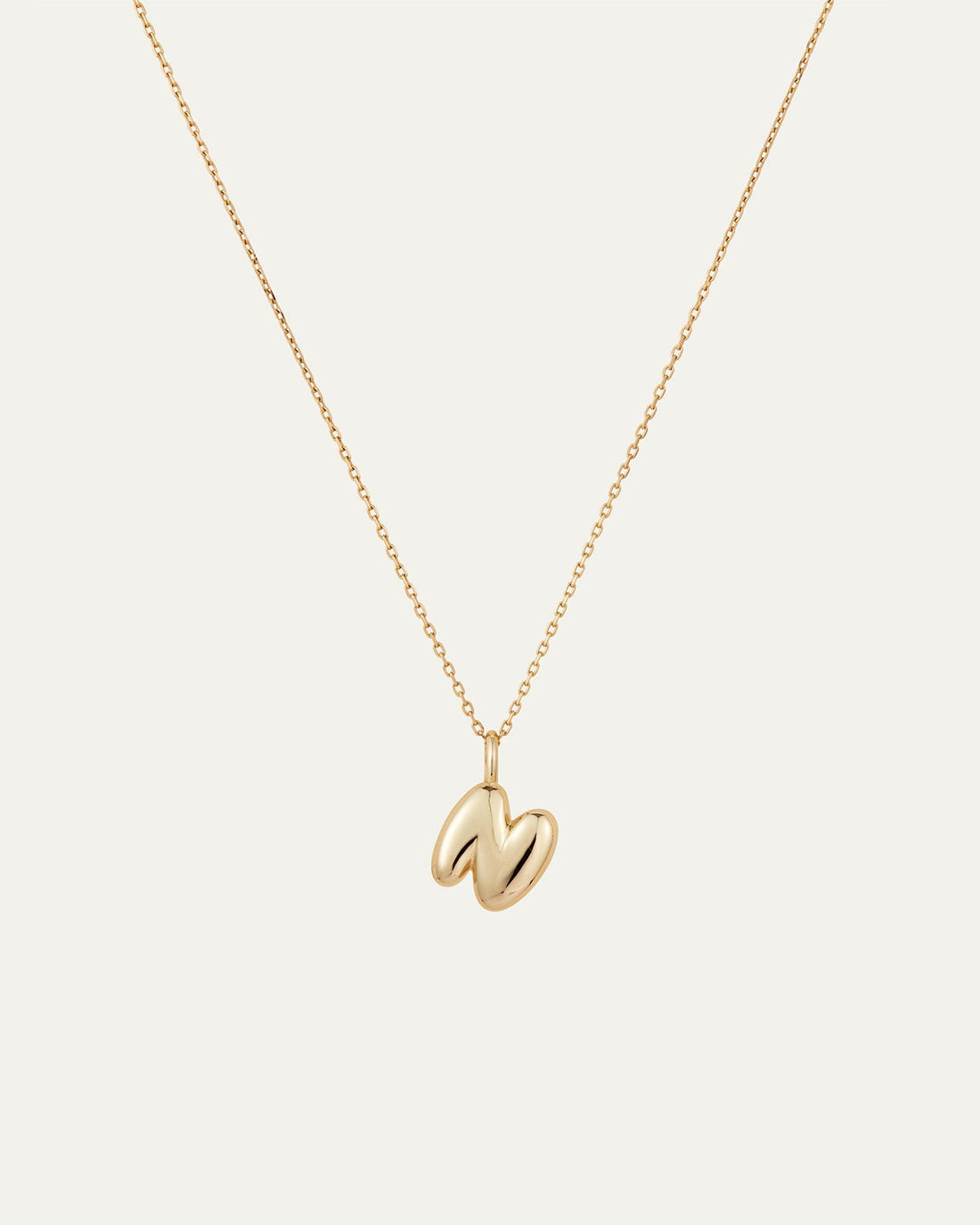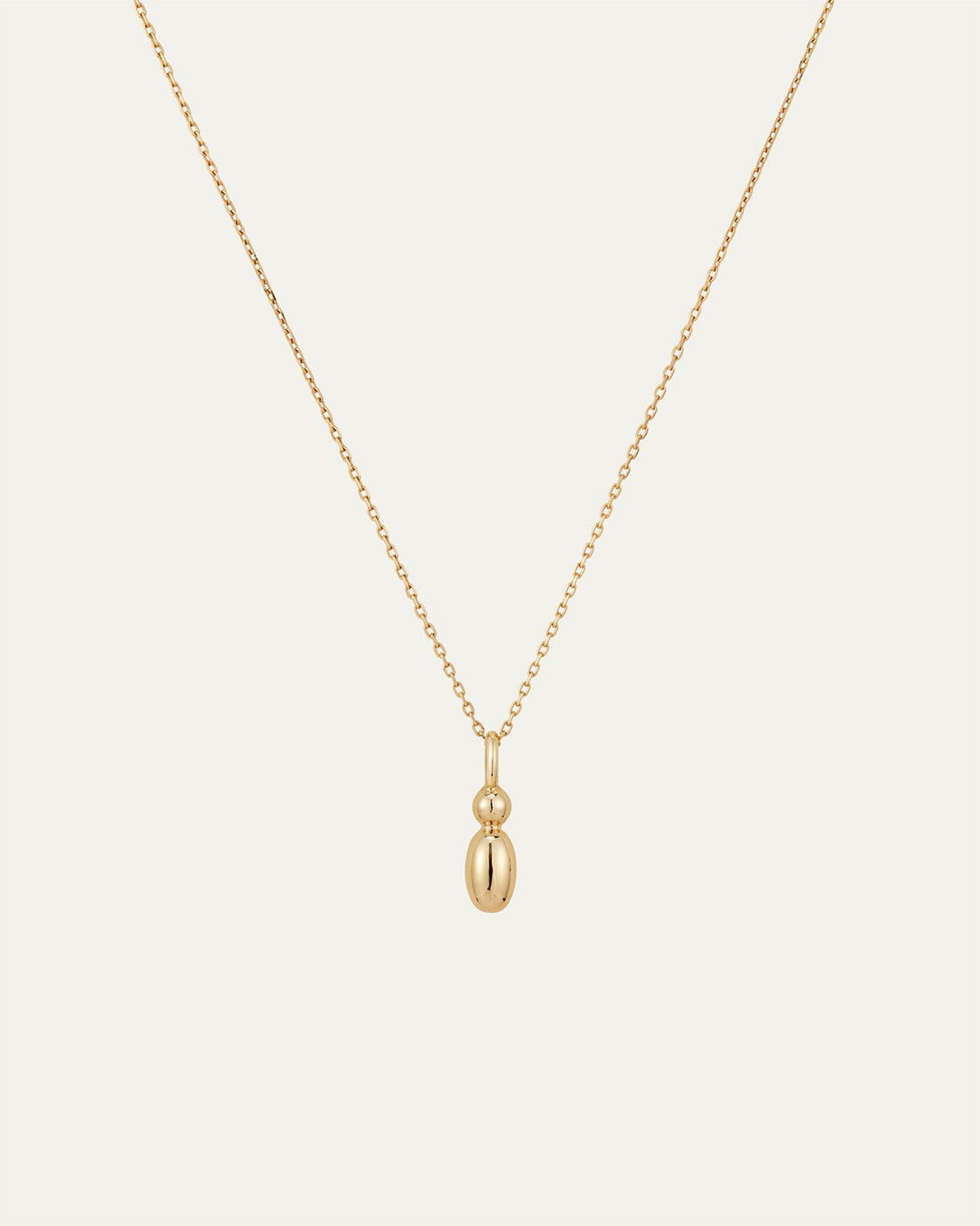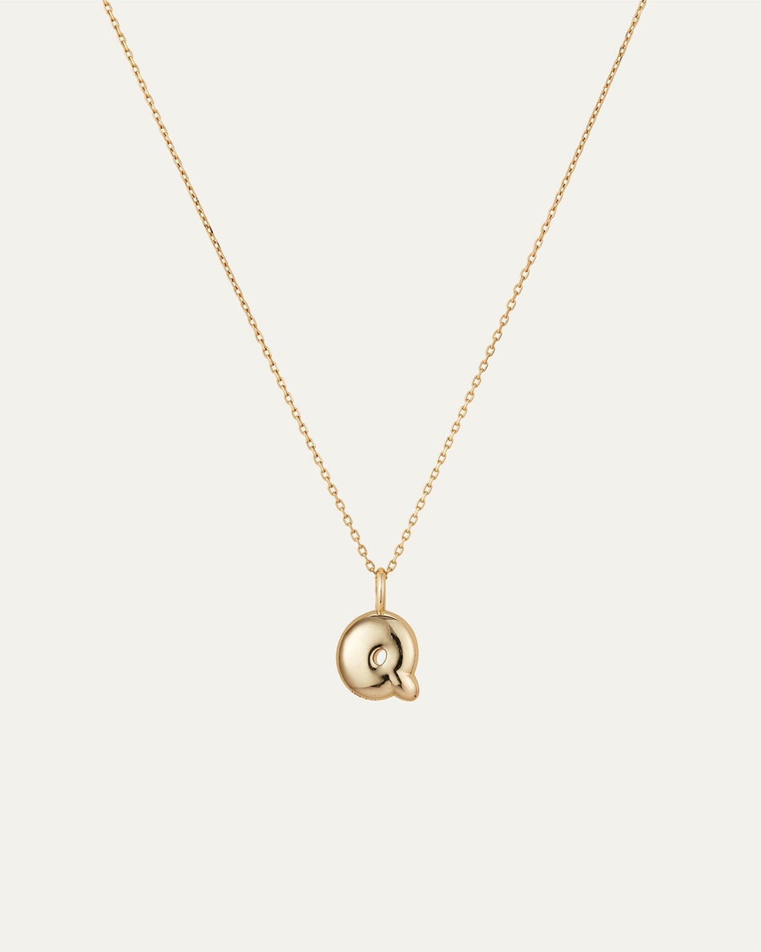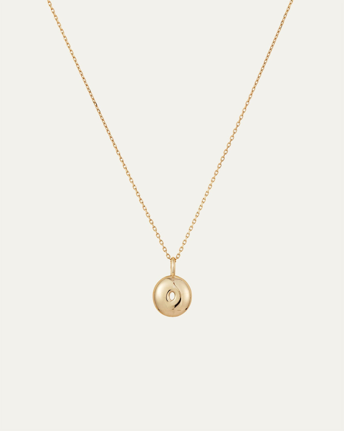 A small, 14K gold removeable pendant glides along a 14K gold, diamond cut cable chain....